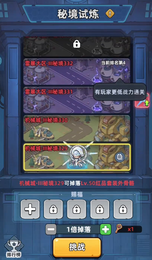 秘境副本则采用阶梯式难度结构,前期层数对新手友好,随层数递增,敌方强度、机制复杂度同步上升。北冰洋套装所需的50级红色品质装备,固定掉落于第329层,此为唯一产出节点,不可替代。玩家需确保角色基础属性、技能等级及符文配置达到相应阈值后,再集中资源冲击该层。