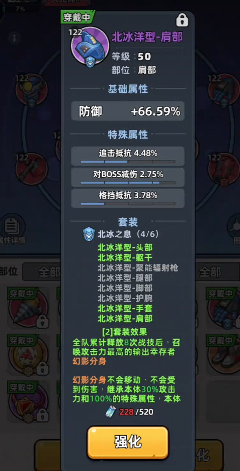 整套北冰洋装备的核心数值聚焦于生存强化:各部位协同触发减伤叠加与护盾值提升效果,尤其适用于深渊探索、限时生存事件及高密度群怪场景。对于当前生存压力较大、频繁遭遇秒杀风险的玩家,优先集齐该套装将带来质变级体验提升。