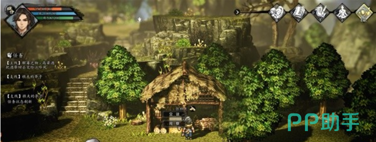 铁匠处得知近期发生粮食失窃,疑为山鸟所为。可任选村长或樵夫进一步问询,剧情走向一致。获得线索后返回郎中处领取特制毒药,继而前往村东猴子聚集地投放——无论是否主动使用毒药,猴群均会误食。完成后复返郎中处领取奖励。另需在村东侧与李寡妇交谈,并于钓鱼翁处激活钓鱼玩法。