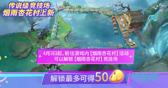 紧随其后的是“传说级竞技场”赛季内容。自4月3日起,玩家可参与“烟雨杏花村”主题玩法,解锁专属地图场景、任务链及阶段奖励。