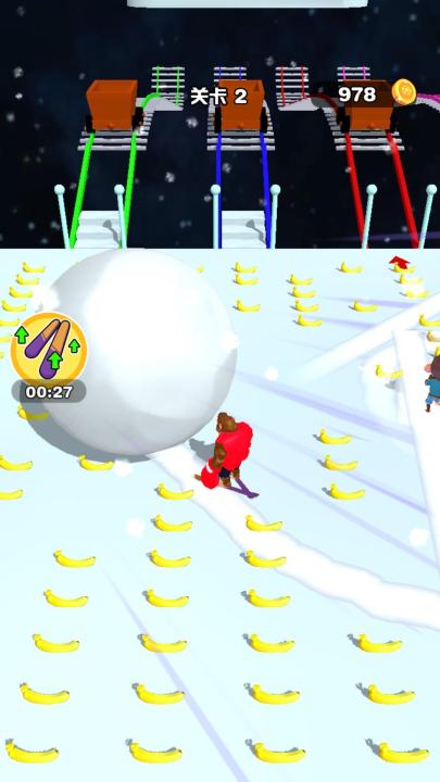 《滚雪球3D大作战》通过新颖别致的设置了吸附的机制,让每个人欢声雷动的控制着雪球不断的去提升体积,而且游戏在图形效果上精妙入神,全程会展示每个玩家推动雪球行动时的轨迹,游戏在对抗环节中,甚至还设置出了用雪球互相投掷攻击的趣味设定,我们在这儿还可以进行互相接力滚雪球。