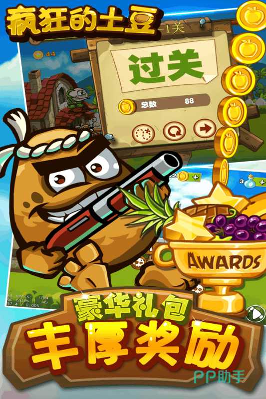 《疯狂的土豆》在今天,你将运用土豆和各种萌兽来结合,一起去对战游戏里那些张牙舞爪的猴子、僵尸敌人,游戏构筑了更为新颖无限的塔防对战概念,更是运用了威风凛凛的造型,设计出了多种具有非凡战斗能力的土豆英雄,在进行实战过程中的同时,通过击杀精英boss,可获得额外的技能选取助力。