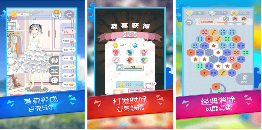 这是款同时具备了换装和消除类元素的精品手游,本作视觉效果很舒服也有着特立独行的养成体系,百变好玩的各种玩法加持吸引到的玩家自然更多,肆意解锁的各种游戏模式让玩家畅玩,经典消除玩法加上纽扣的主题也很有意思,参与感十足的消除机制会让玩家的心情慢慢放松。