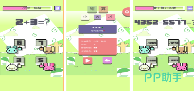 其实本作以是款为低龄孩子们开发打造的算数模拟类游戏,很基础的算数概念加上多元化的任务可玩性不差,考验口算和心算能力的基础玩法吸引了更多玩家,可以点触屏幕选择不同的数字进行互动,越来越高的关卡难度也为这款佳作润色不少,只要你是算是小天才就可以在这款APP里尝试挑战。