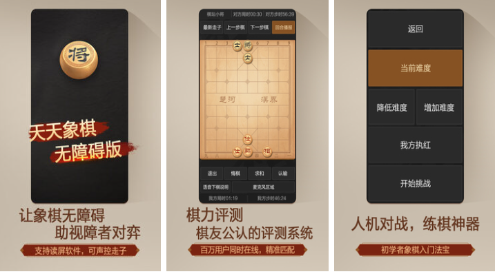 本作是腾讯公司给各位视力障碍患者开发的下棋手游,独特的控制体系让每一个玩家都沉浸其中,加入了人机PK和单机挑战这类有趣的模式,超快的整体下棋节奏也为这款佳作润色不少,还有着特殊的棋艺评估系统让下棋高手流连忘返,辨识度极高的整体内容也是吸引各位玩家的利器。