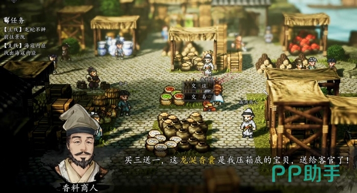 完成全部购买后,香料商人将主动开启新对话,表达谢意并直接赠予“龙涎香囊”。此机制属于隐性触发设计,并非明示任务提示,因此极易被跳过。建议玩家抵达仙人渡后,优先清空集市所有可交互摊位的商品库存,既能确保不遗漏本道具,也有助于同步激活瀛洲商人相关支线线索及潜在隐藏任务。