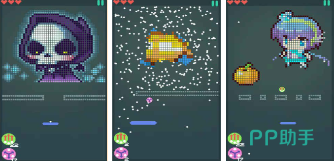 这款弹射消除类型的闯关小游戏还是很好玩的,整体内容饱满好玩也有着超多任务可以完成,消除过程解压爽快同时可以触发像素特效,满屏马赛克的既视感给人留下深刻印象,辅助道具一共有两个可以让自己的小弹球更多,激情四射的弹射消除玩法带来的新鲜感更强,破坏游戏爱好者尽情进入本作摧毁吧。