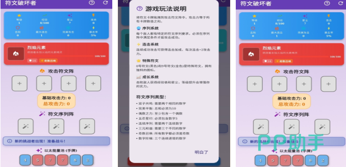 在这款破坏者手游中每个玩家都可以破坏形形色色的符文,在破坏摧毁类游戏玩法上增加了三消模式,消除破坏的游戏机制简单解压,超好玩的互动破坏体验带来的新鲜感不错,众多的符文道具帮助玩家进行摧毁,各种各样的娱乐休闲模式加持可玩性不错,你也试着进入魔法世界破坏符文吧。