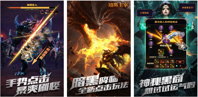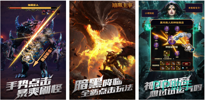 暗黑主宰是款可以利用各种手势点击屏幕战斗的游戏,爽快度拉满的打怪升级理念让人印象深刻,暗黑世界背景压迫感十足也有着极高的参与感,全新的点触式互动操作并不复杂,而且画面塑造干净没有任何复杂按键,黑市商人处可以随心所欲兑换各种各样的资源,暗黑主宰这款操作机制特殊的神作你也试试吧。