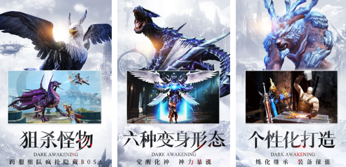 暗黑觉醒这款暗黑向的游戏其实玩起来有点像怪物猎人,因为加入了狩猎各种怪物的玩法,个性化的锻造模式可以让玩家获取更多的武器资源,打击感相当硬核也有着养成宠物的特殊系统,怪物也拥有极为特殊的变身形态让人印象深刻,视听反馈和特效都塑造的相当卓越哟。