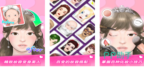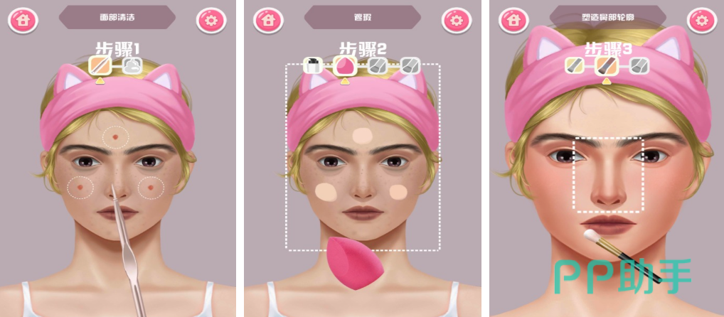 这款化妆模拟器游戏吸引到很多不会化妆的女生玩家,你可以在这款APP中手把手学习更多化妆技术,粉底、眼霜这些有趣的装饰道具随意使用,为玩家贴心准备了真实的装扮步骤,真实的动作捕捉技术给人真实装扮角色的感觉,操作简单灵活可以让小白化妆师找到专属的化妆思路。