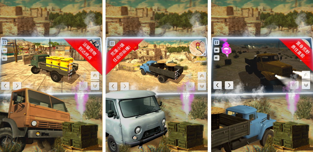 在这款手游中玩家可驾驶的卡车都是军用的,越野类型的皮卡车造型更加写实立体,战损版的卡车精致写实也有着灵活操作手感,运输类的任务超多大大提升了玩家的驾驶技术,操作按键也有不少帮助玩家轻松控制卡车移动,视听效果真实不会让大家感觉违和,你也进入这款卡车驾驶手游中执行任务吧。