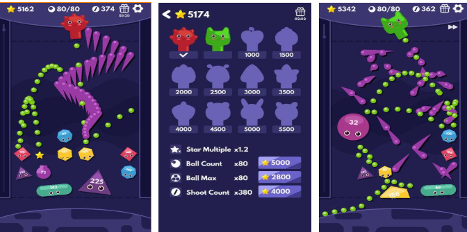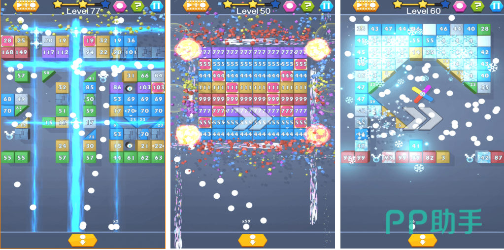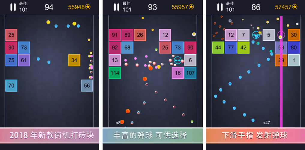 本作是款操作极为容易的后拉式操作弹球消除游戏,依旧采用了发射弹球摧毁障碍物的主要玩法,发射弹球进行摧毁的游戏机制很有意思,街机风格的背景加上真实物理反馈都是亮点,多样的弹球皮肤切换起来也是十分自由,极为清脆的弹球音效也是这款弹球手游的乐趣所在哟!