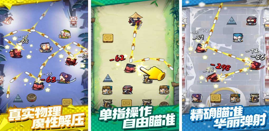 弹一弹来了是款弹射射击类的小型轻量级手游,包含着真实的物理引擎和解压休闲的气氛,特殊的弹射机制让游戏画面显得更为华丽,可以单指进行操作也可以自定义瞄准敌人,游戏具备特殊的弹射机制和弹幕效果,激情四射的弹一弹互动体验新鲜感不俗,你也试着在这款弹球小游戏里不断闯关吧。