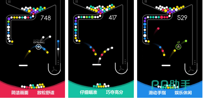 本作也是款有着真实物理引擎的下落式弹球游戏,弹球主题的玩法和互动机制代入感也不俗,更多的关卡和地图展现也显得极为新奇,五颜六色的各种弹球可以在一起互动看上去琳琅满目,物理引擎真实也具备着极为简单的画面,休闲放松的气氛营造也是这款手游的主要亮点哟。