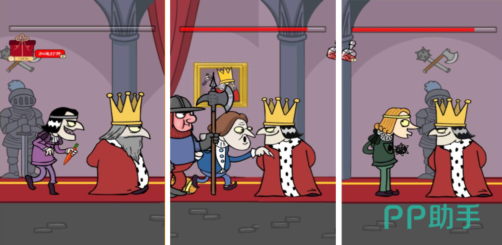本作是款画面塑造极为搞笑的免费单机暗杀类游戏,很有辨识度的搞笑画面犹如在玩页游,画面爆笑、音效滑稽都是这款手游的特色,扮演杀手暗杀国王的过程状况频出,超级搞笑的游戏节奏也是很多玩家的最爱,画面营造极为生动带来的卡通风背景也很特殊,搞笑游戏爱好者都可进入本作暗杀国王。
