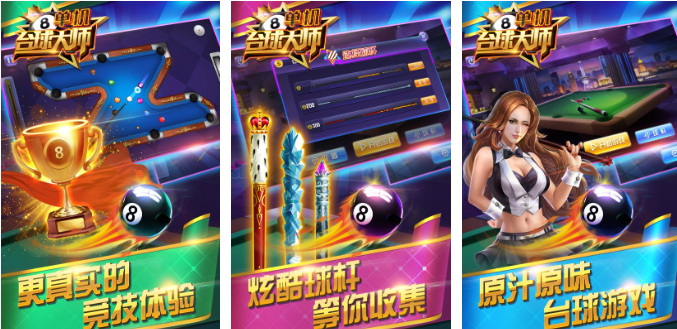 3D画面的单机打台球手游小编只找到三个,再推荐其他一些台球PK类的手游给大家。