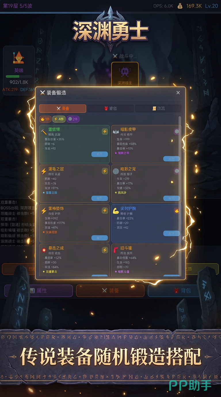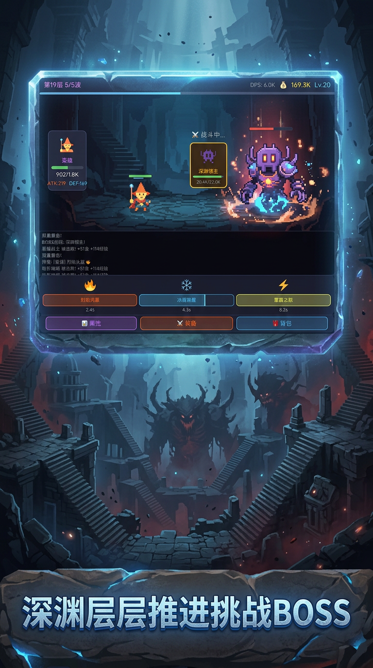 游戏采用轻量化设计,单局进入即玩,适配碎片化场景。核心循环围绕“爬塔—获取材料—锻造强化—词条洗练—战力跃升—挑战更高层数”展开。每层Boss机制各异,难度呈阶梯式增长,而玩家可通过自由搭配装备词条构建多种流派,例如暴击速攻型、持续灼烧型、护盾反伤型等,策略维度丰富,避免单一养成路径。即使离线,系统仍会结算挂机收益,有效缓解资源焦虑。