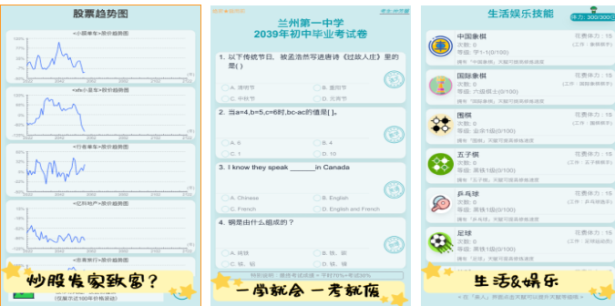 这款人生模拟游戏也是利用文字互动进行展现的,你可以在游戏世界感受其他的人生并改写剧情,你可以尝试当打工族或者自定义开店赚钱,游戏互动性不错也拥有文字互动的基础理念,游戏世界的人生设定还是很有趣的,真实衍生出的各种人生走向也带来极高参与感,自由人生模拟这款精品佳作你可别错过。