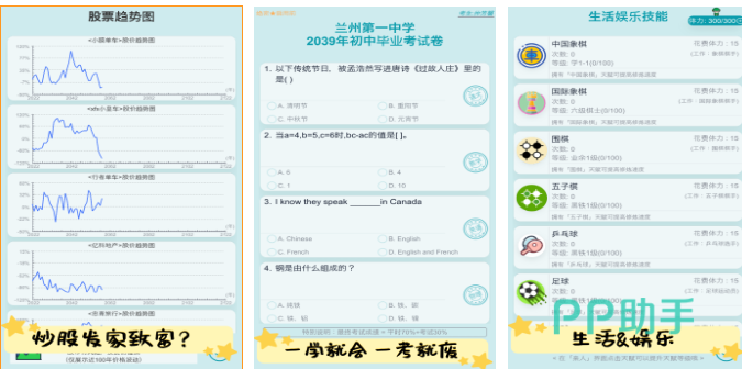 本作是款使用文字互动机制进行互动的人生模拟游戏,真实模拟了另一段人生且可以自定义人生走向,就连角色的样子、出生环境都可以自定义,超有意思的文字人生模拟体验带来的新鲜感不错,简约的美术表现让人生模拟游戏爱好者沉浸,模拟出的真实人生走向也给人不俗的沉浸感哟。
