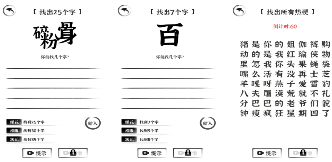 猜谜游戏爱好者可以在这些字谜游戏中挑战一下,自由度极高的挑战玩法和猜字谜的设定更受大家欢迎,现在朋友们都知道好玩的字谜游戏有哪些了吧,热衷于猜谜的朋友可在这些手游里解锁更多玩法,字谜破解和词语解谜这些玩法很硬核。