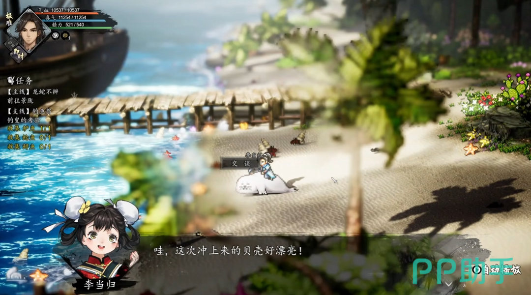 后续需同步推进老袁支线任务:在破庙场景中再次遇见步微月,并协助其解救被困的老袁。此后前往临海楼面见宋掌柜购置指定物品,再至码头与柏二爷交谈,即可收束黄金蟹支线。最后跟随小白猿行动路线,获取「青云心法」残卷,并持续提升步微月好感度,为任务终章铺垫。