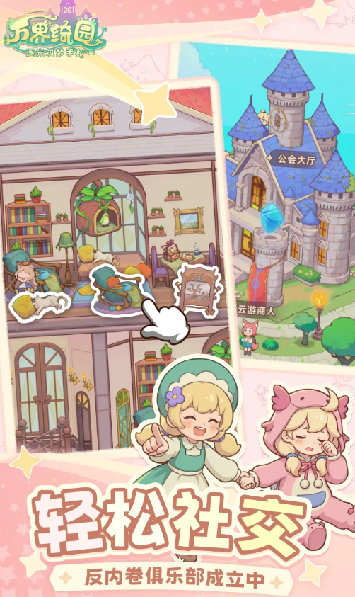 玩家可通过探索随机生成的“裂隙”获取关键碎片,用以解锁新区域、新家具、新魔物图鉴及剧情章节。整个流程节奏自由、无倒计时压迫感;同时支持多人协作共建“俱乐部”,共同打造星空庭院、浮空花圃等特色空间,在增强玩家间情感联结的同时,也拓展了庄园经营的策略性与个性化表达维度。