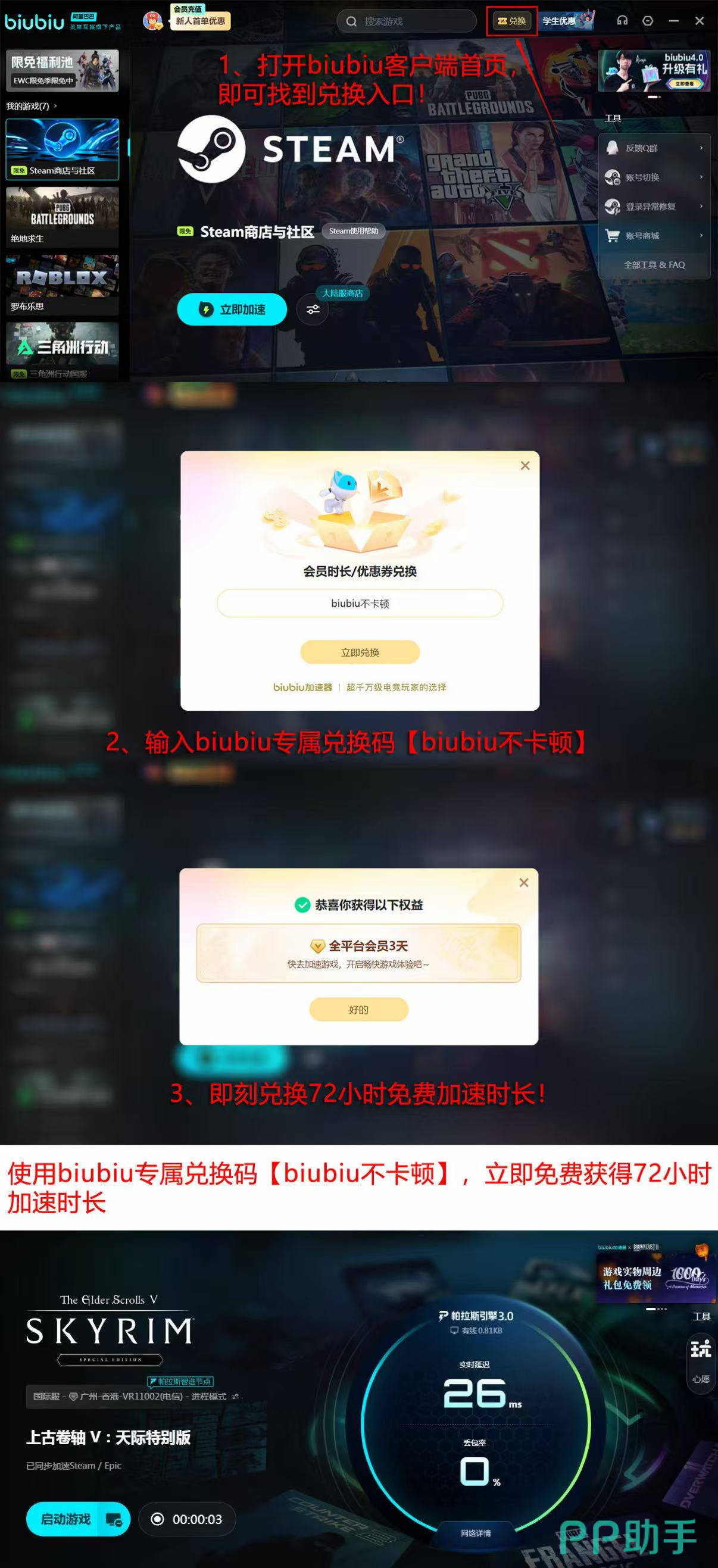 当前新注册用户可领取24小时全游戏免费加速权益;首充套餐定价等效于单杯标准规格奶茶消费水平。本期特别开放限时福利:所有用户输入兑换码【biubiu不卡顿】,即可激活3日专属加速权限。平台同步上线限免游戏库、随机道具掉落活动等多重运营玩法。