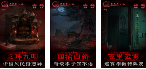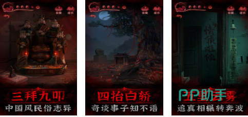 这是一款很适合成年人玩家挑战的恐怖风格解谜游戏,解谜类的基础理念特立独行也有着烧脑的性质,形形色色的机关和陷阱也需要玩家绞尽脑汁进行破解,继承了纸嫁衣的世界观和扑朔迷离的基础剧情,诡异民俗背景呈现给人血脉喷张的感觉,只要你是高智商解谜高手就可试试纸嫁衣3!