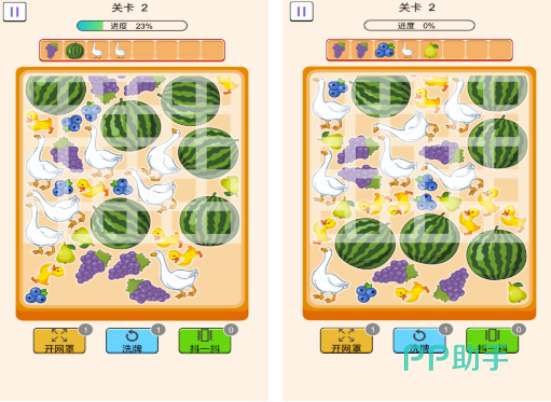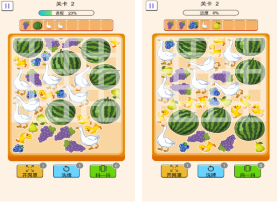 这是一款融入了抓鹅甚至是吃瓜的手游,整体采用q版的画面风格,也融入了三消消除玩法,利用指尖就能点击屏幕休闲解压,让大家享受欢乐的时光。玩的时候,每一个关卡里面都会显示出西瓜,甚至是鹅以及各种各样的小动物以及水果。需要利用设置网兜的方式,满足三个完全一样的进行消除,你可以抓大鹅,也可以抓其他的。