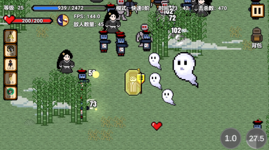 虽然从画面上来看,并不是特别清晰,但是却将中国的志怪元素深度融合,还以快节奏的对战方式为主,大家将要扮演的是其中的道士,需要在到处都是鬼怪的世界里努力求生,还以横版形式所展现,而在面对源源不断的僵尸疯狂入侵时,大家要合理操控其中的人物角色自动发起攻击,只要将敌人彻底击败之后,就可以获得大量的经验值,还能感受到浓郁的肉鸽元素。