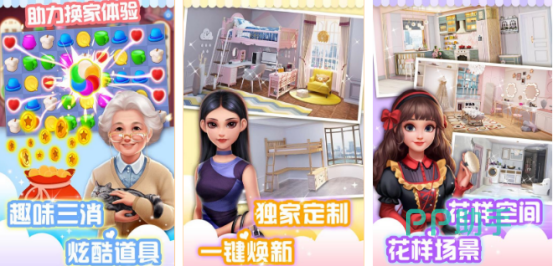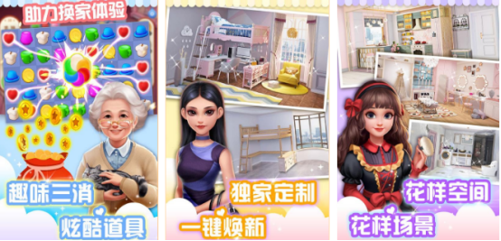 清新的游戏画面,还将经典的三消玩法以及家园的设计玩法为主要核心。大家在其中将要化身成为最佳的设计师,原本破烂不堪的房间,在自己的一手打造之后,就能成为人们特别梦幻的住宅区。通过合理滑动屏幕的方式就能够满足三消的需求,还可获得更多漂亮的物品,装修梦想之家。