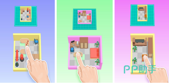 围绕家具搬运的玩法为核心,在不同的家居场景当中,大家可通过拖拽或者是旋转的方式正确放置这些家具。但是在放置家具的过程中也会随机呈现出各种障碍物,只要能够合理规划出正确的路径,就可以安全的放置合适地区,其次还有不同的环境任由大家来挑战,包括简单的公寓或者是豪华的大别墅。当大家完成特殊的任务之后,就可以解锁隐藏的内容,还可获得辅助道具。