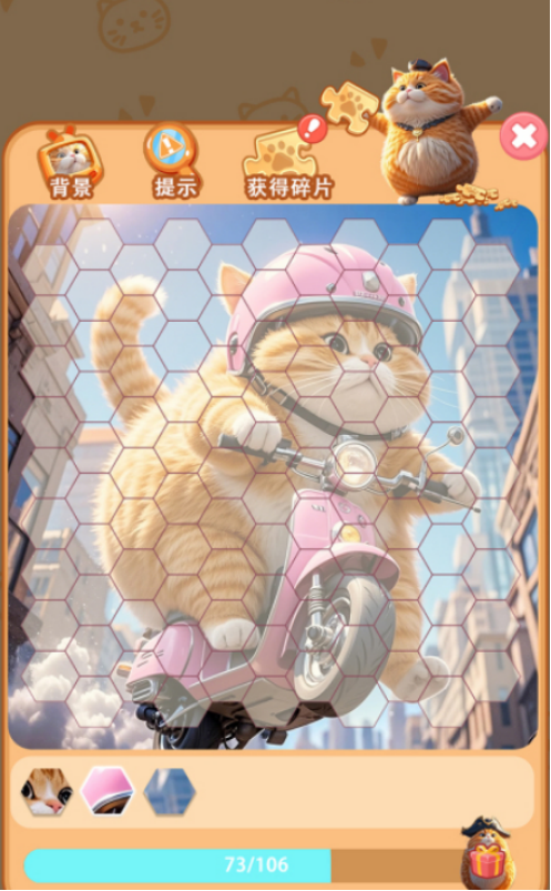 海量精心设计的关卡内容都有不同的任务要求组合而成,每个关卡中所呈现出来的图片是完全不同的,就会让大家看到很多赏心悦目的可爱猫咪,包括布偶猫或者是橘猫等等。每种猫咪的画面展现是完全不同的,而大家只要将各种零碎片组合在一起,就可以看到特别精美的小动物。