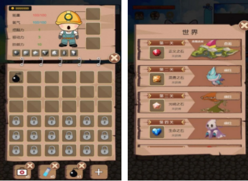 这款能化身为挖地小子进行挖矿的手游,除了有这简单的操作方法,玩家单手就可以在竖屏的游戏里自由的探索。除此之外,也是一款能够回味童年经典的,里面的主角,除了有小帅,还有小美,虽然两个人之前的生活特别美好,却因为魔王抓走小美,所以小帅必须要通过不断挖矿的方式,开启冒险之旅,解救小美,一定要注重道具的使用。