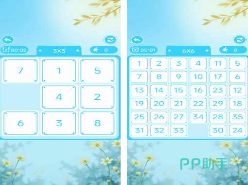 不仅这一款提供了多种难度,小朋友在玩的时候可以根据自己的实际需求,选择不同的难度等级,也是以经典的数字华容道玩法为主。每一个玩家在畅玩的时候都要观察被打乱的数字顺序,然后尽量在特别少的步数以及用时最短的时间中,将数字的顺序排列正确。提高孩子空间几何能力,也可以在玩的时候享受轻松愉悦的氛围,要积极思考。