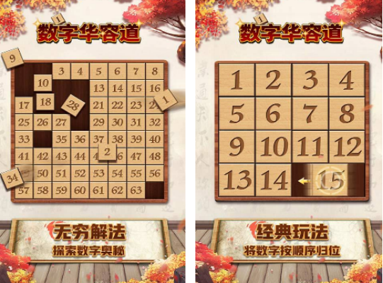 这款有经典的数学华容道玩法为主的游戏,需要将所有的数字按照顺序归位,不仅涵盖比较简单的3×3的网格,只需要在一到八个数字当中完成排列顺序就可以挑战,除此之外还给大家提供了多种难度挑战模式,难度也会不断的递增。尤其是在进入了8×8的网格中以后需要将1到63的数字正确排列,所以难度也是比较大的。