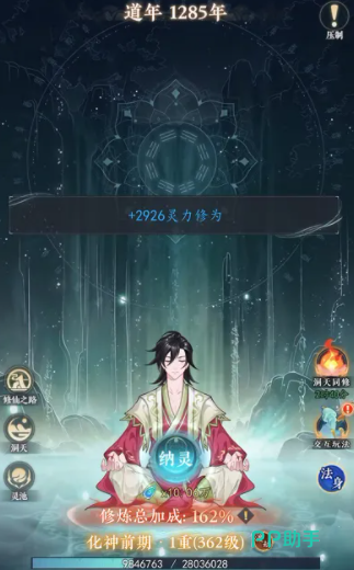 修真之路始于“凡人期”,全境界体系严格遵循四阶十重结构:每一主境界划分为四个阶段,每个阶段再细分为十重小境界。初期玩家通过轻点“纳灵”操作积攒灵气,加速突破;当角色迈入炼气期后,即可激活自动修炼机制,实现全天候修为增长,真正解放双手。