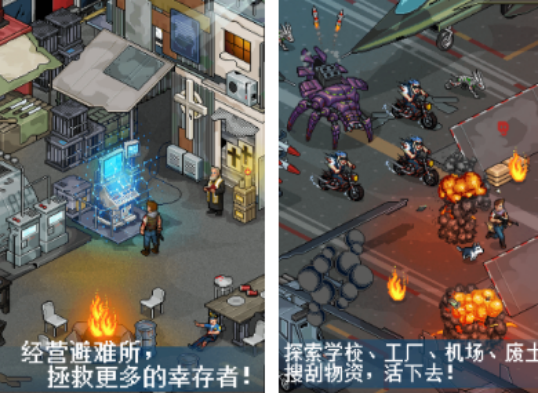采用经典像素美术风格,聚焦于末日下的生存经营与动态探索。玩家需管理避难所运转,招募并安置幸存者,同时深入城市废墟、荒芜森林、干旱沙漠等多变地形搜寻物资。面对普通僵尸与高威胁变异丧尸,需持续强化武器库与防御体系,以保障群体基本生存需求。