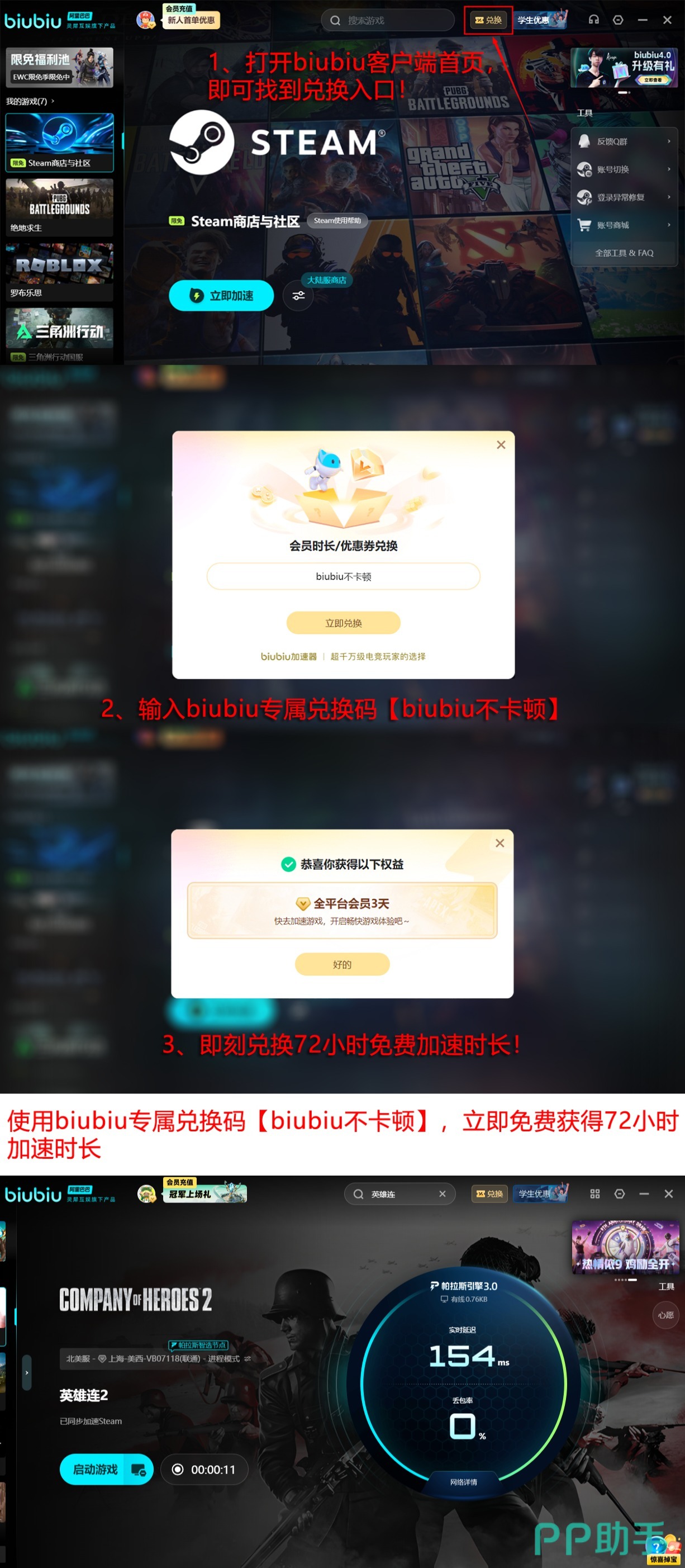 目前biubiu加速器推出限时双福利活动:1.新用户完成注册即可获赠24小时全游戏加速时长,无需绑定支付方式;2.所有用户(含老用户)输入专属兑换码【biubiu不卡顿】,可即时领取72小时通用加速权益,覆盖《英雄连2》全部服务器节点。