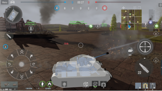 主打高密度坦克对抗体验,单局支持15v15超大规模实时对战,每场战斗最多容纳30辆可操控坦克。地图设计强调立体空间利用,含高地俯角、城市巷战、森林掩体等多样化地形结构。玩家需结合雷达扫描、队友报点与战术走位选择进攻路径,在动态战局中切换主炮瞄准、装填管理与短停射击节奏,真实模拟装甲兵作战流程。