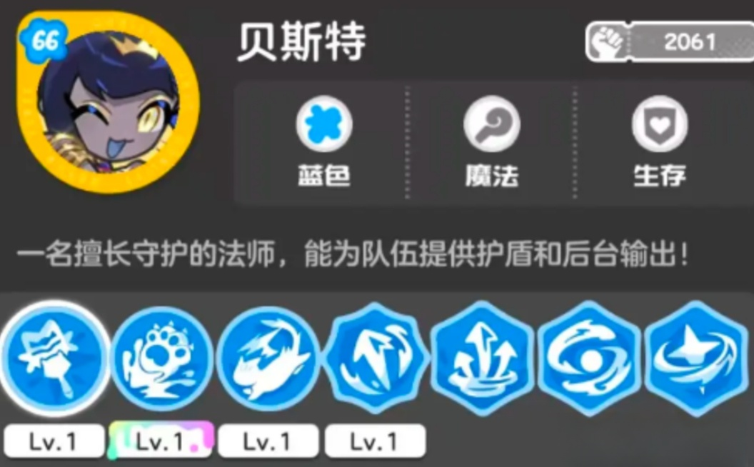 贝斯特隶属蓝色法术系,定位为团队防御中枢。其技能体系围绕“结构化防护”展开,包含等级护盾生成、百分比减伤及战术性位移三重效果。施放后形成的湛蓝护盾可覆盖全体友方单位,并同步提升自身移动速度,便于快速回归前排承伤位置。在高容错需求、长线消耗类副本中,她是稳定阵型、延缓战局崩坏的核心保障。