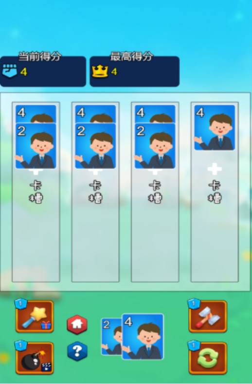 内置双模式架构:无尽模式专注耐力与连招节奏,限时模式强调单位时间内的高效合成。主界面中央设4格合成槽,底部滚动刷新带数字卡片;玩家通过滑动或拖拽完成配对合并,界面同步显示当前得分与历史最高分,数据反馈即时清晰。