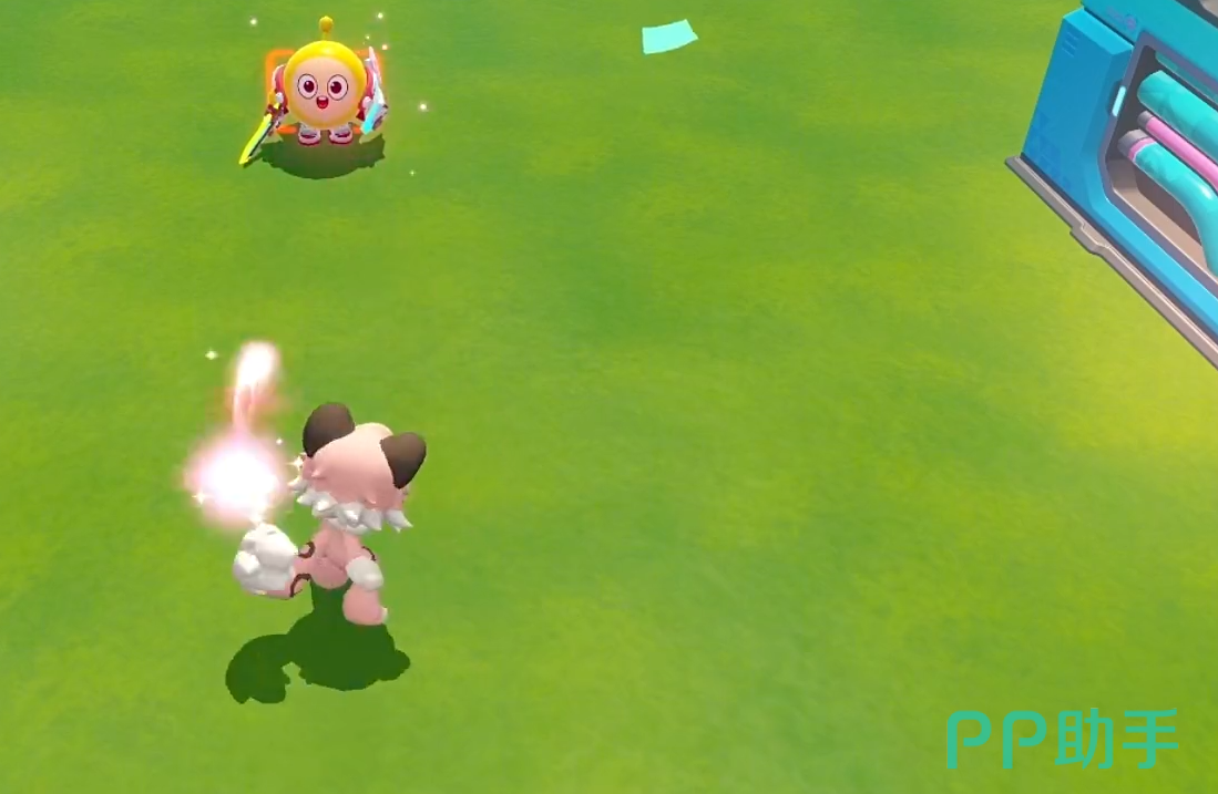 二技能“奥能喵掌”提供强控+聚怪双效:在目标区域生成两只喵爪,短暂延迟后向中心合拍,将范围内敌方蛋仔强制聚拢并造成法术伤害,附加1秒眩晕,是开团、留人与技能连招的关键枢纽。