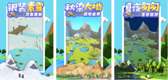 以沉浸式自然交互为设计主线,弱化任务引导与数值压力,强调环境感知与生活节奏。玩家可在原始荒野中观察动物习性、采集植物资源、搭建生态居所,并同步体验春耕秋收、冬雪夏荫的四季动态变化。操作门槛低,适合追求放松体验与轻度创造的用户群体。