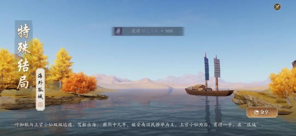 特殊结局达成,并且奖励500绑点,还是比较丰厚的;
