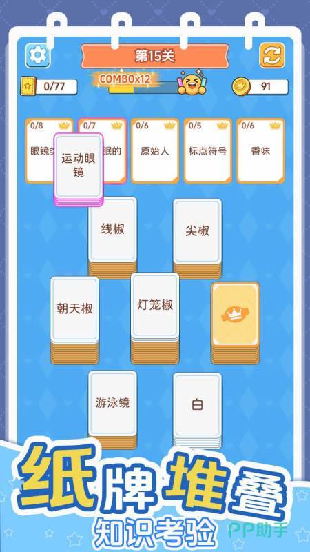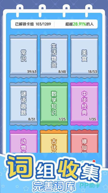 游戏中设有两大核心模式:纸牌模式与接龙模式。纸牌模式强调信息归类与空间规划能力,玩家需依据空格布局策略性摆放词组卡片,在有限区域中完成逻辑分组;随着关卡推进,将逐步解锁进阶词汇组合与跨学科术语挑战,持续强化记忆提取与概念整合能力。