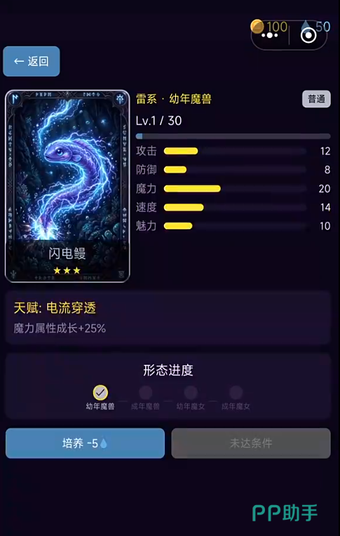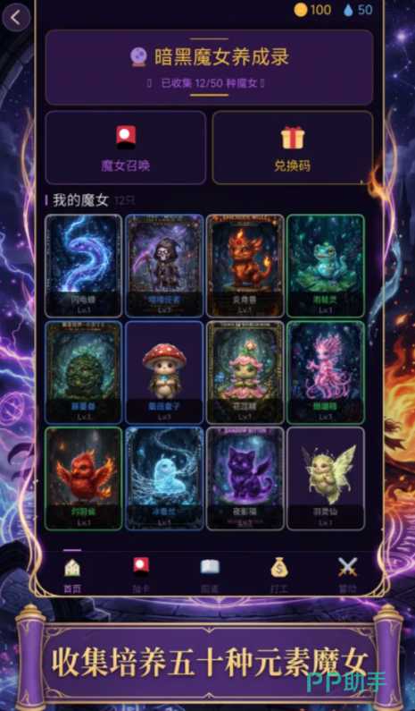 全游戏共设计十余位原创魔女角色,覆盖火、冰、雷、暗、光等多元元素体系。每位魔女均设有幼年期→成长期→成熟期三段式进化路径,其五维基础属性(攻击、防御、速度、魔力、意志)需依战斗定位进行差异化加点。例如克制属性对战中优先选用对应元素魔女,可显著提升战术容错率与资源利用效率。