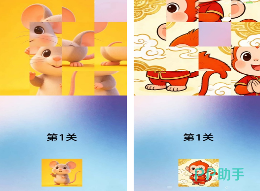 高完成度的像素风拼图解谜手游。游戏提供超百关卡,每关由9–16块不规则碎片组成,目标是还原完整动物形象(含熊猫、企鹅、树懒等共32种)。碎片边缘具备智能吸附提示,支持旋转与局部重排,难度随关卡递进但无时间压力。画面清爽明快,音效轻柔,兼具视觉识别训练与短期记忆锻炼价值。