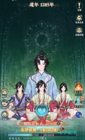 游戏内置“洞天同修”社交玩法,支持多人实时协同修炼。在指定时段内,玩家可组队进入共享灵气场域,彼此修炼效率相互增益。每周一、三、五中午12:00至14:00,以及18:00至20:00,将限时开启“灵气争夺”活动——玩家可进驻灵气法阵,通过协作积攒稀有灵气值,加速自身境界突破进程。